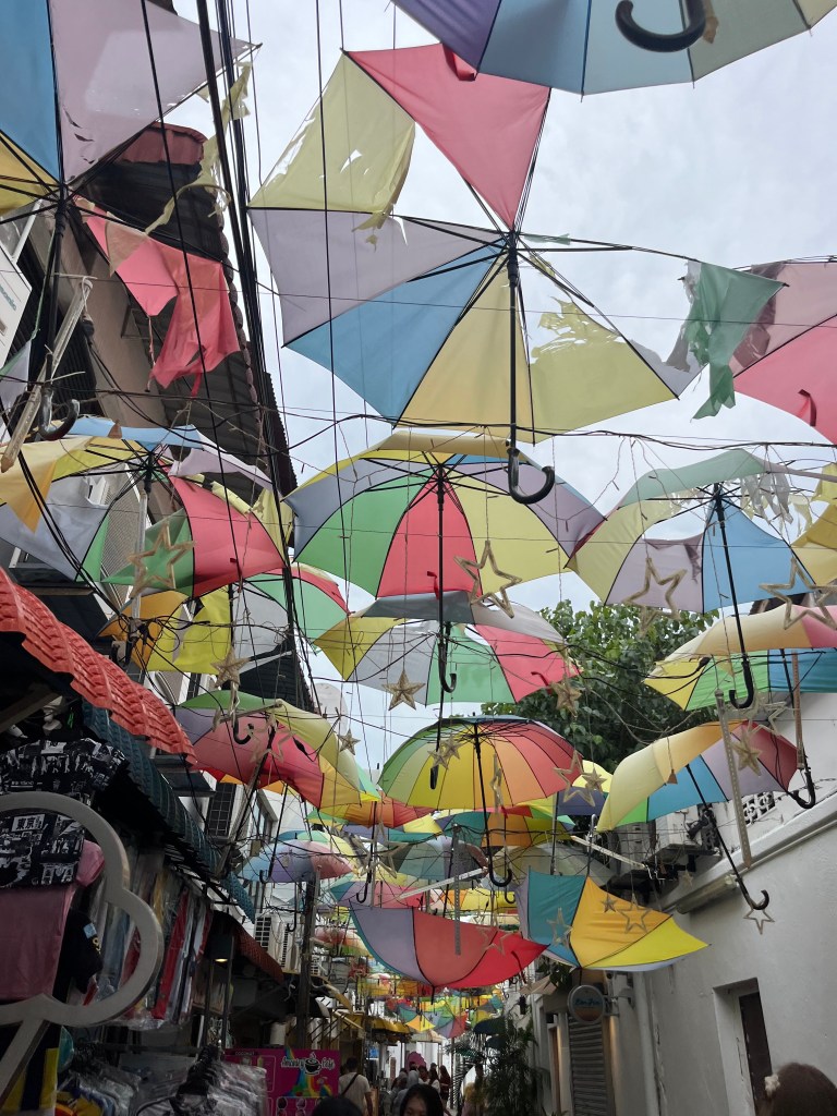 We headed straight out for a wander and, in true Sophie-and-George fashion, stumbled upon some of Georgetown’s famous street art, including the iconic Boy on a Motorcycle. We also found Umbrella Alley and browsed through charming little shops. George even treated me to a gold ring for just 10 ringgit, an absolute steal!