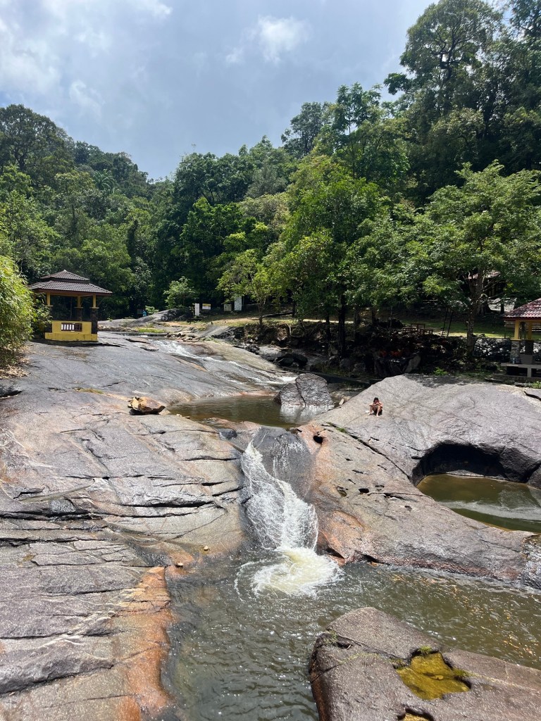 For our first full day in Langkawi, we kicked things off with a visit to the famous Seven Wells Waterfall. With no public transport on the island and taxis few and far between, renting a moped felt like the obvious choice. George learned to drive it on the spot, and after strapping on our helmets, we set off on our first Langkawi adventure.
